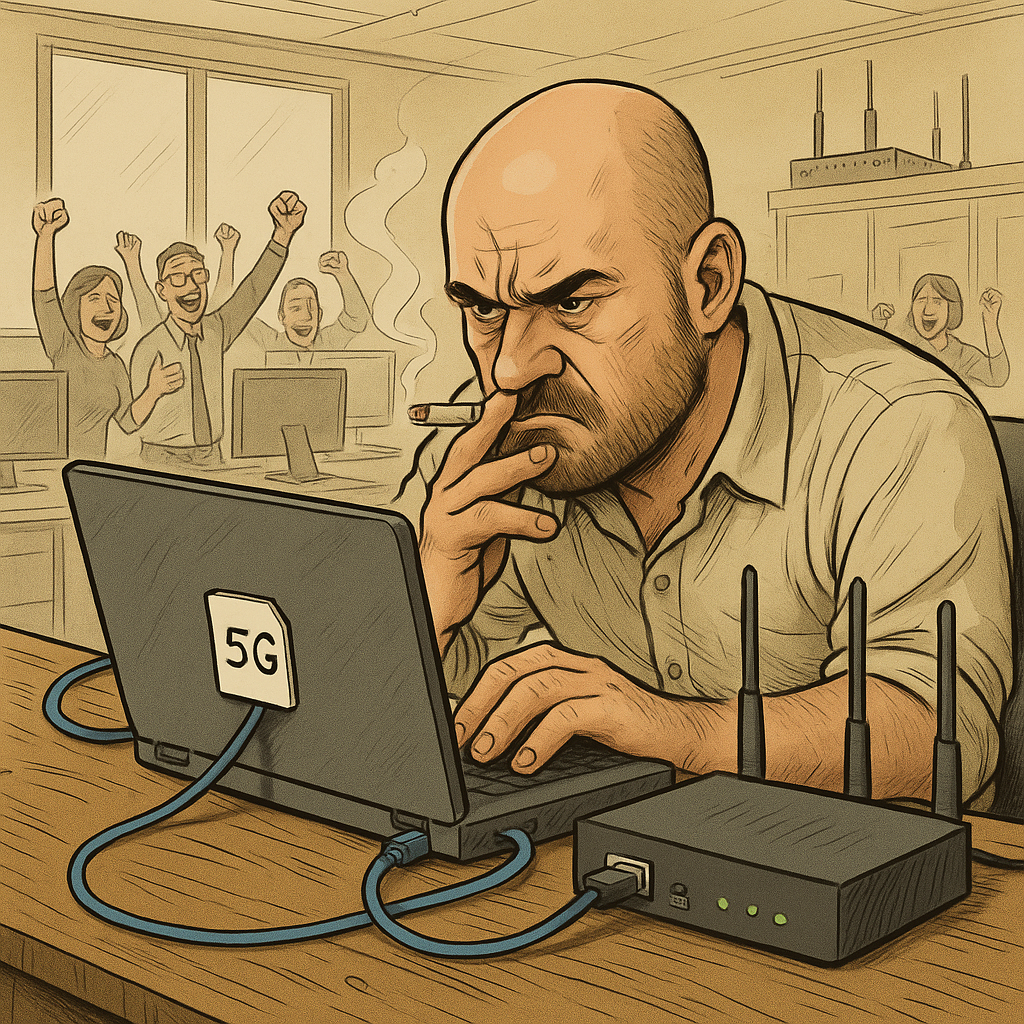 Il portatile, nel frattempo, si è trasformato in un router 5G improvvisato che ho dovuto mettere fuori dalla finestra del datacenter per farlo prendere di più.